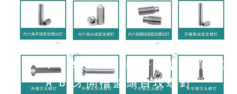 1)開槽普通螺釘多用于較小零件的連接。它有盤頭螺釘、圓柱頭螺釘、半沉頭螺釘和沉頭螺釘。盤頭螺釘和圓柱頭螺釘的釘頭強度較高,瑁在普通的部件連接上;半沉頭螺釘的頭部呈弧形,安裝后它的頂端略外露,且美觀光滑,一般