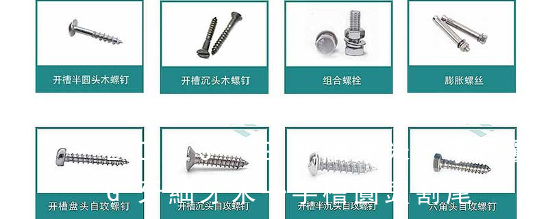 (鐵板牙自攻螺絲) B-2: Plastic Tapping Screw. (塑膠用,自攻螺絲) C: Wooden Screw : 木工螺絲 D: Drywall Screw :水泥墻螺絲 E: Self Drilling Screws鉆尾螺絲(不銹鋼鉆尾螺絲,復合材料鉆尾螺絲) F:膨脹螺絲,四片膨脹螺絲又