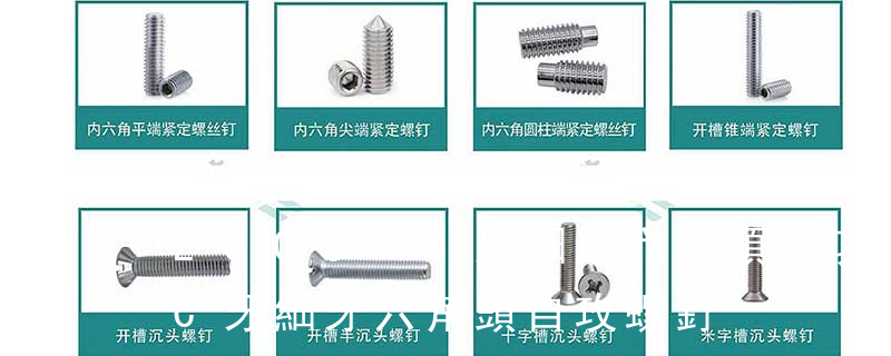 主要分類包括普通螺絲、自攻螺絲和膨脹螺絲三種。有頭螺釘Cap screw 過去限于全牙的扣件,但這現在并非標準用法。六角頭螺釘Hex cap screw與大六角螺栓Hex bolt 顧名思義為頭部為六角型的外螺紋扣件,設計為使用扳手轉動。 自切自攻螺釘有以下幾種型式:十字槽盤頭自切自攻螺釘,十字槽沉頭自切自攻螺釘。十字槽半沉頭自切自攻螺釘,六角頭自切自攻螺釘。3、自擠自攻螺釘(自攻鎖緊螺釘)自擠自攻螺釘的螺紋一般為機螺紋,很少采用自攻螺紋。在扳擰